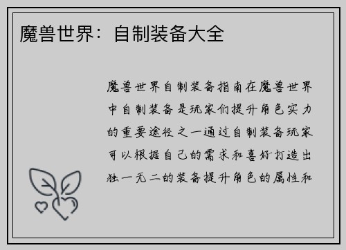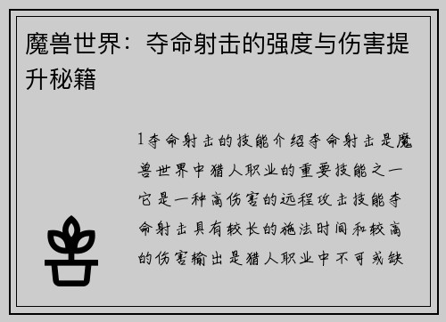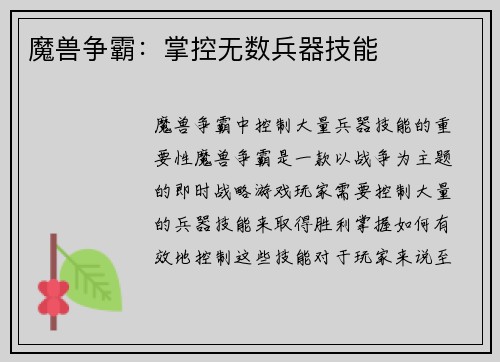 魔兽世界如何提升武器 引言: 魔兽世界(World of Warcraft)是一款备受玩家喜爱的大型多人在线角色扮演游戏,其中武器的提升对于玩家来说至关重要。本文将从多个方面详细阐述如何在魔兽世界中提升武器,帮助玩家更好地享受游戏。 1. 探索副本与团队副本 在魔兽世界中,副本是玩家提升武器的重要途径之一。玩家可以通过挑战副本获得装备和武器的提升。特别是团队副本,通过与其他玩家协作,击败强大的Bo...
