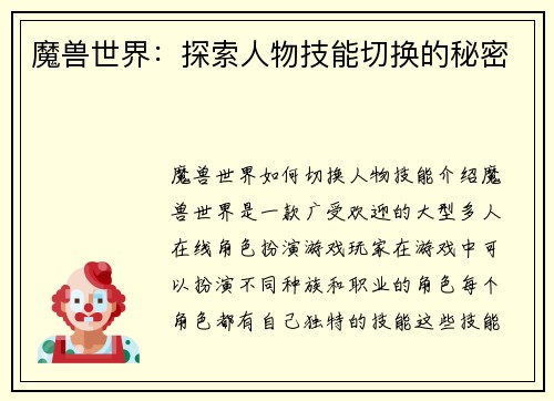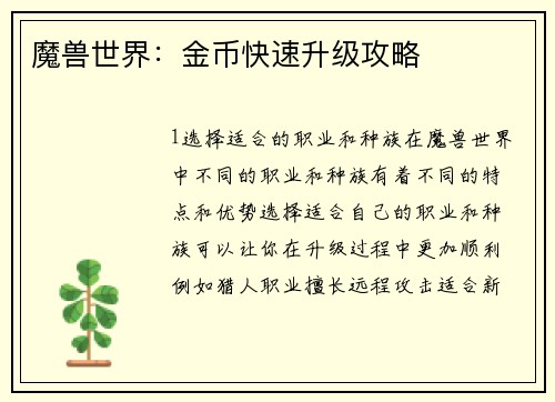 魔兽世界新手如何快速学会技能点 引言: 魔兽世界是一款深受玩家喜爱的大型多人在线角色扮演游戏,其中技能点的学习和提升是玩家在游戏中不可或缺的一部分。对于新手玩家来说,学会如何快速提升技能点是非常重要的。本文将从多个方面为新手玩家介绍如何快速学会技能点。 一、选择适合的职业德扑之星 在魔兽世界中,不同的职业有着不同的技能点学习方式和特点。新手玩...